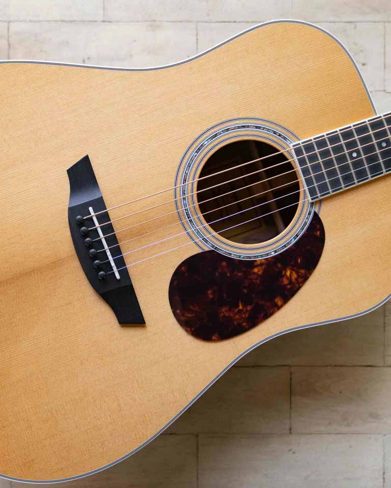 An instant icon, Berkeley fills a room with its fullness and resonance. This dreadnought guitar delivers a perfectly aged tone with a snappy midrange and strong low end, perfect for bold strummers.