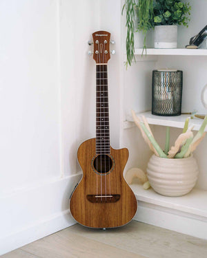 For a trip with extra altitude, Juno is our tenor cutaway ukulele, delivering a first-class upgrade with its clear, full-bodied sound and high-fret access.