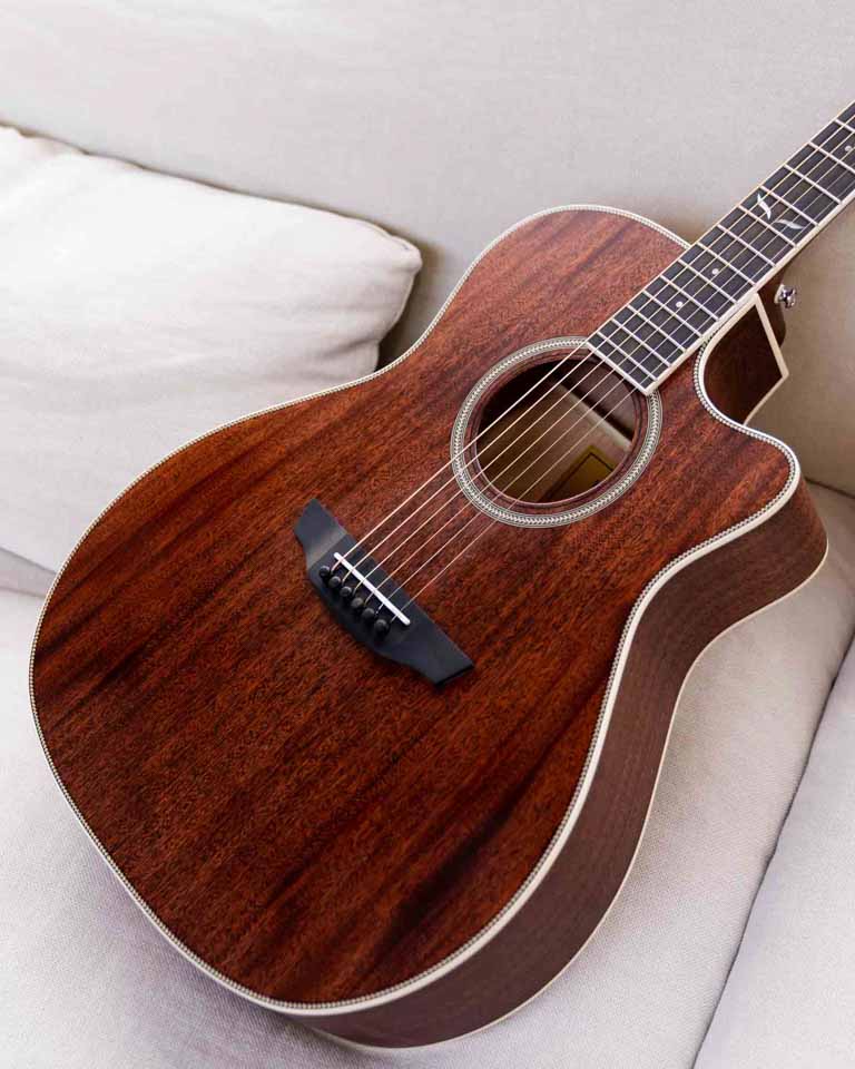A common tonewood for top, back, and sides, Mahogany is known for its clarity and evenness to accentuate the mid-range tones.