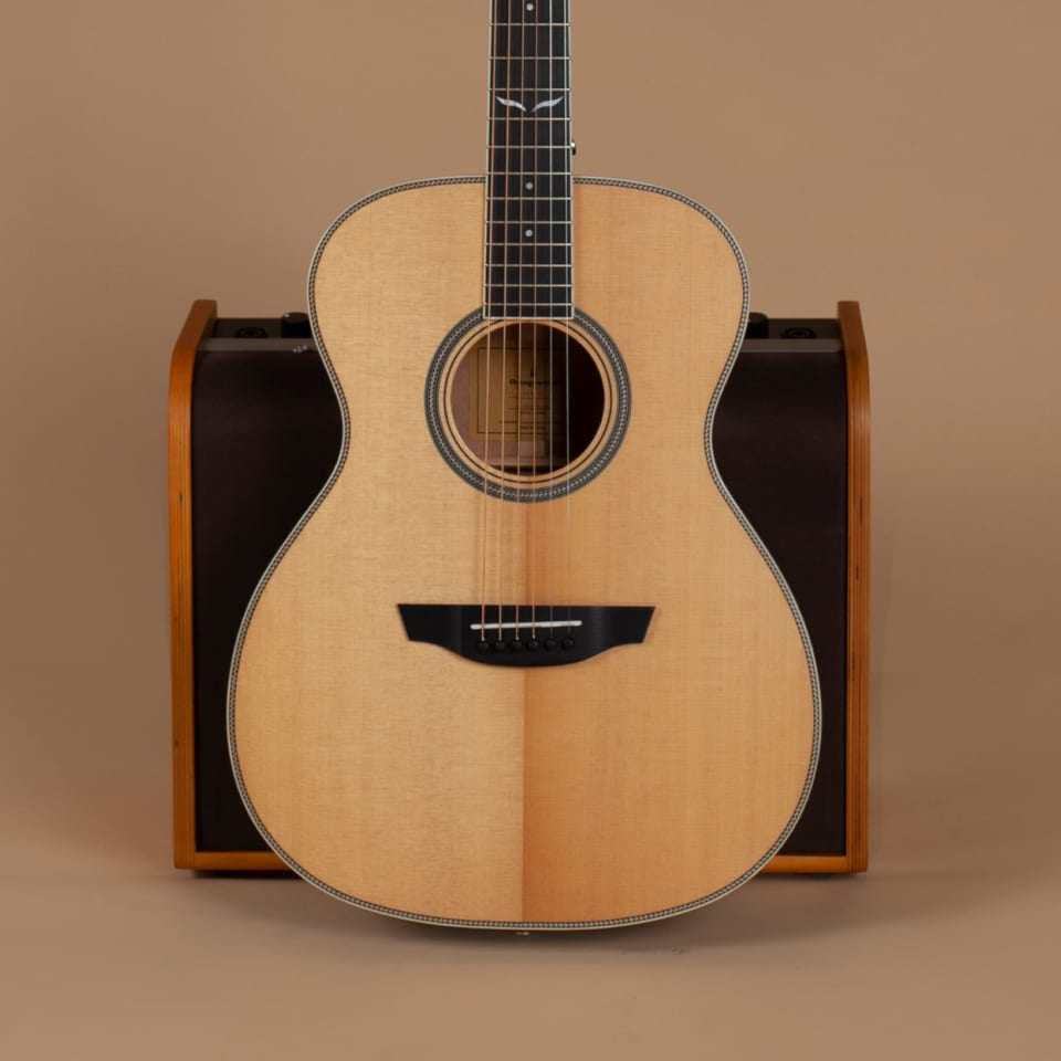 Used for back and sides, pau ferro is sought after for its full-bodied projection and ability to complement a softer topwood.