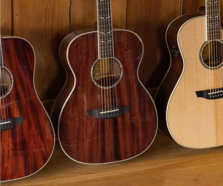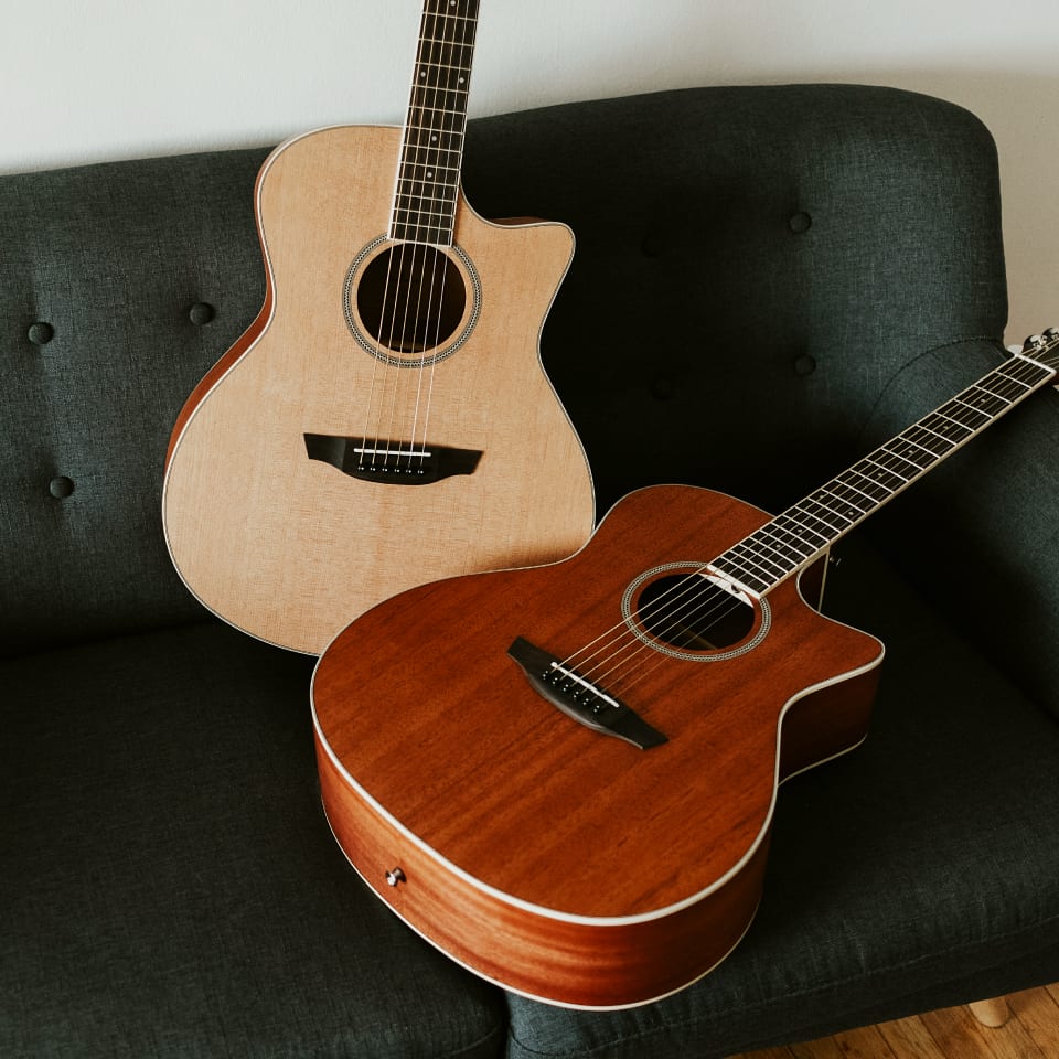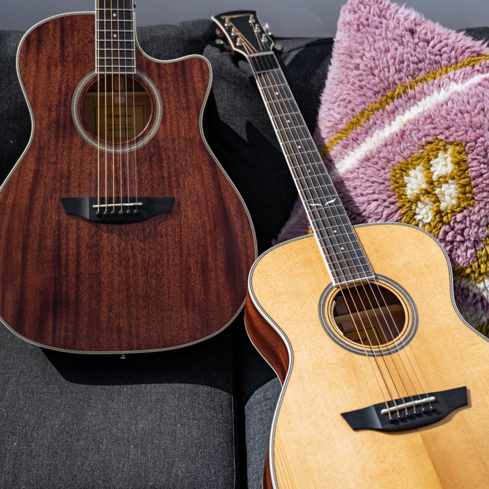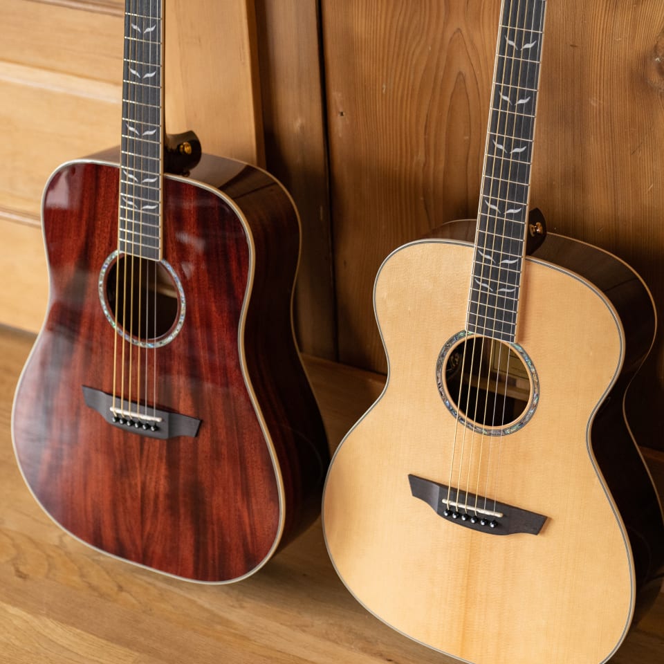 We offer five acoustic guitar collections — each with their own sonic and aesthetic characteristics. The key distinction between our collections are wood construction and budget. Our all solid wood collections produce the most complex tone with a sound that only improves with age, while our solid top and layered guitar collections offer high-quality yet affordable alternatives.