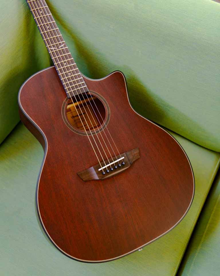 A common tonewood for top, back, and sides, Mahogany is known for its clarity and evenness to accentuate the mid-range tones.